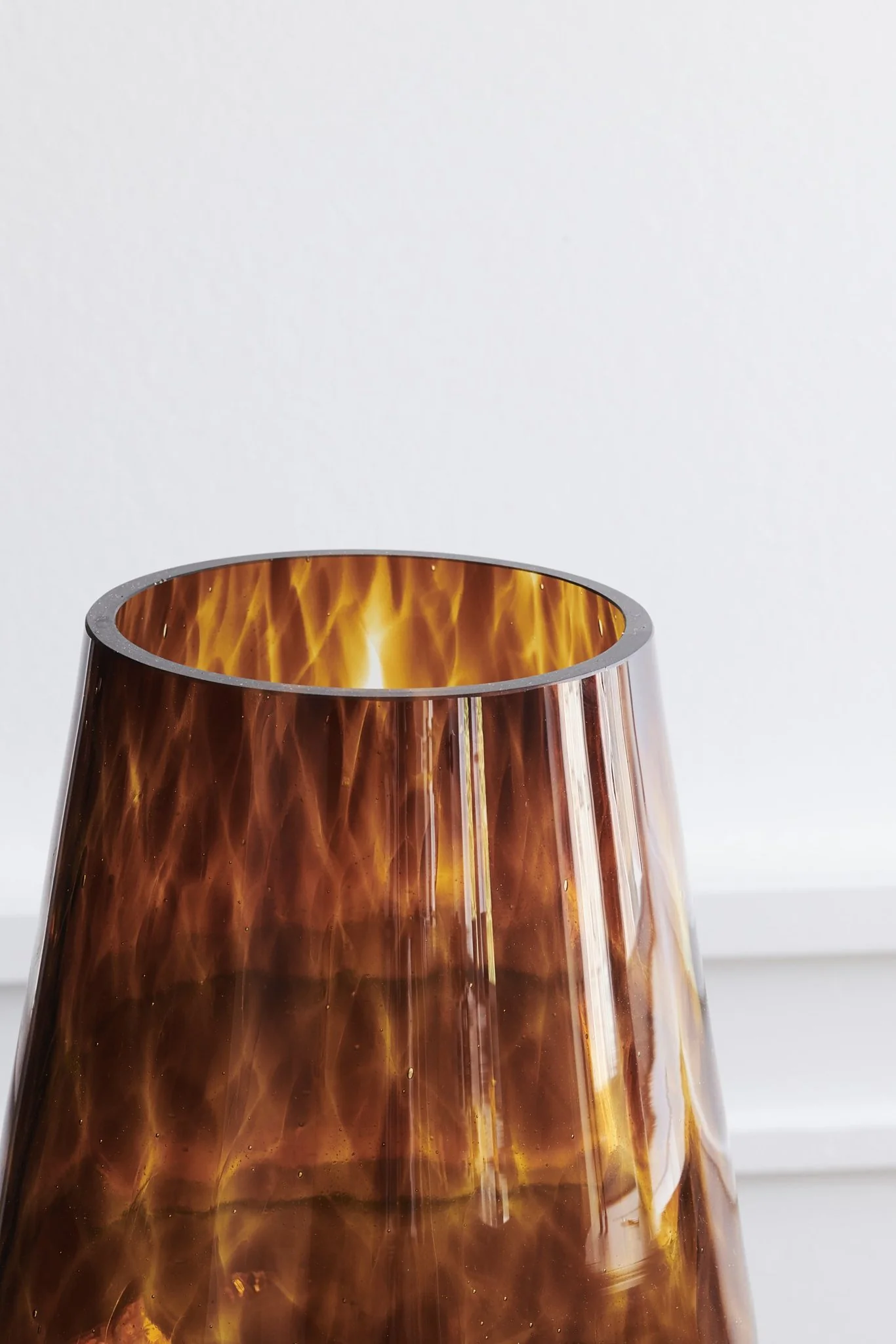 Den kraftige glasvase i gennem farvet glas er smuk som den er, eller med en lille buket.