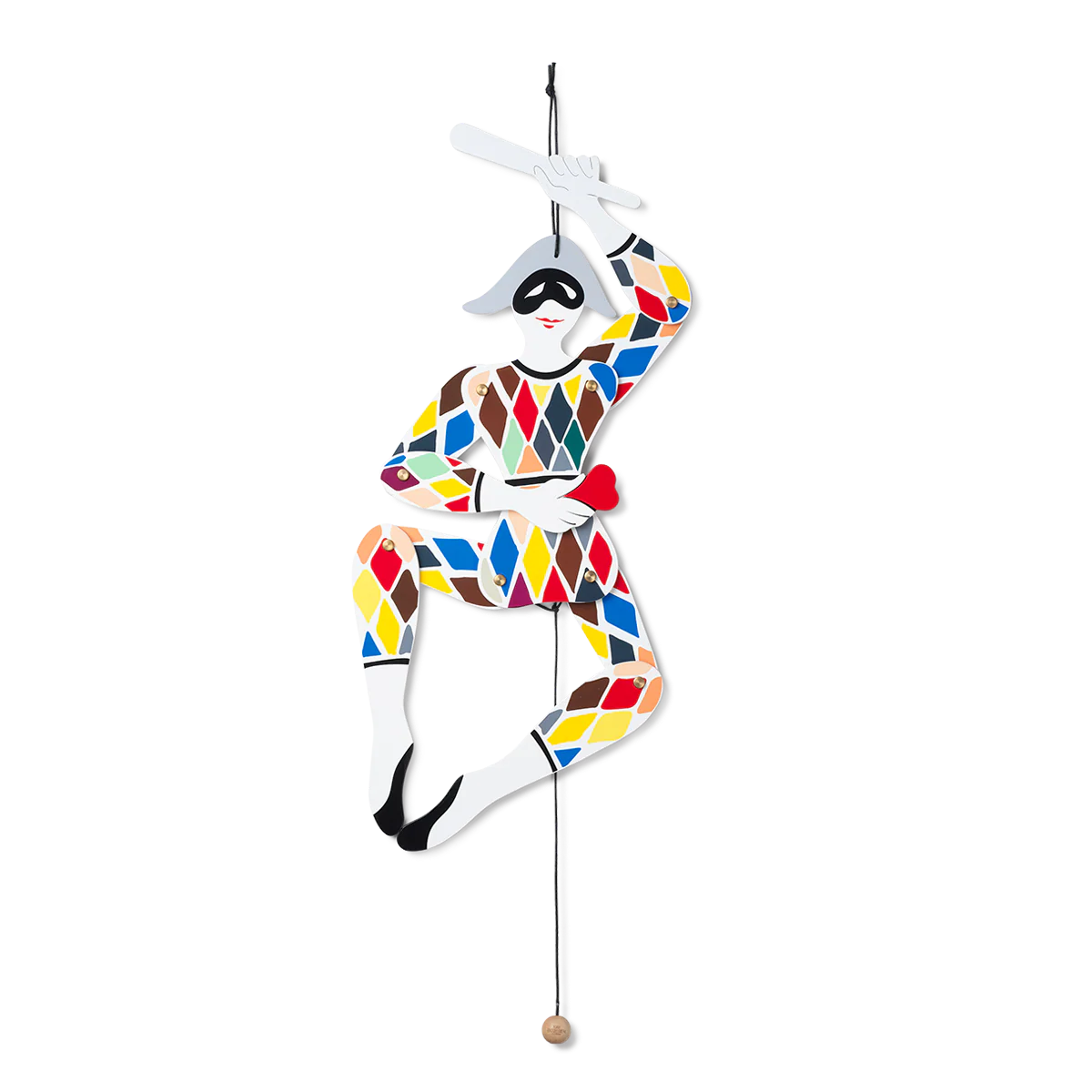 Harlekin og Columbine er to af hovedfigurerne i den gamle italienske folkekomedie, commedia dell'arte. Nyd den vidunderlige Harlekin Sprællemand fra Kay Bojesen i malet bøg. Lad Harlekin hænge frit og lad ham danse i forestillingen om sin elskede Columbine. Kay Bojesen Harlekin Sprællemand har bevægelige arme og ben monteret i snore.